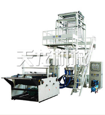 該機通過二臺擠出機將兩種相同或不同的物料 塑化擠入共擠復合機頭,生產出經共擠成型號的復 合薄膜,從而大大提高了薄膜的物理性能,增加其 強度,使薄膜具有良好的阻隔性、氣密性。 該機采用先進的連續旋轉機頭,產品平整,均 勻度好,保證了包裝機,印刷機等后續工序設備對 薄膜的質量要求,適合生產復合珠光膜,復合液體 包裝膜,絕緣膜,多功能農用薄膜等。其運用范圍 正在逐步擴大,是塑料制品開發和方向。 適用原料:LDPE、HDPE、LLDPE